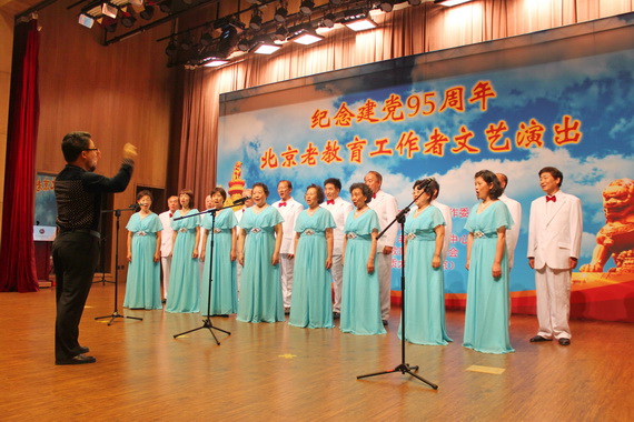 6月23日上午,由北京市委教育工作委员会、北京市教育委员会主办,北京教育老干部活动中心、北京老教育工作者总会承办的“纪念建党95周年北京老教育工作者文艺演出”在中国地质大学国际会议中心南楼二层报告厅举行。我校老年社团夕阳红艺术团合唱团,以混声合唱《世界需要热心肠》参加了本次演出。